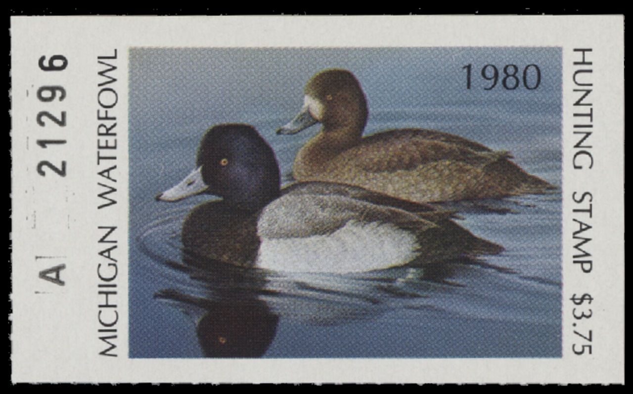 MI5 1980 State Duck Stamp. Mint Never Hinged. Very Fine. Lesser Scaup by Larry Hayden.