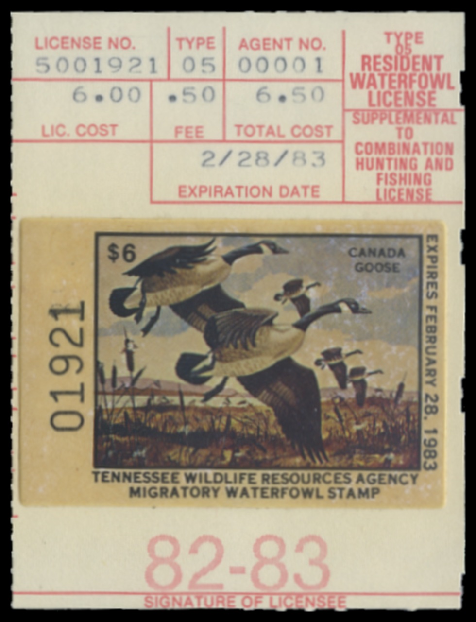 TN4 1982 State Duck Stamp. Mint Never Hinged. Very Fine. Canada Geese by Ken Schulz.
