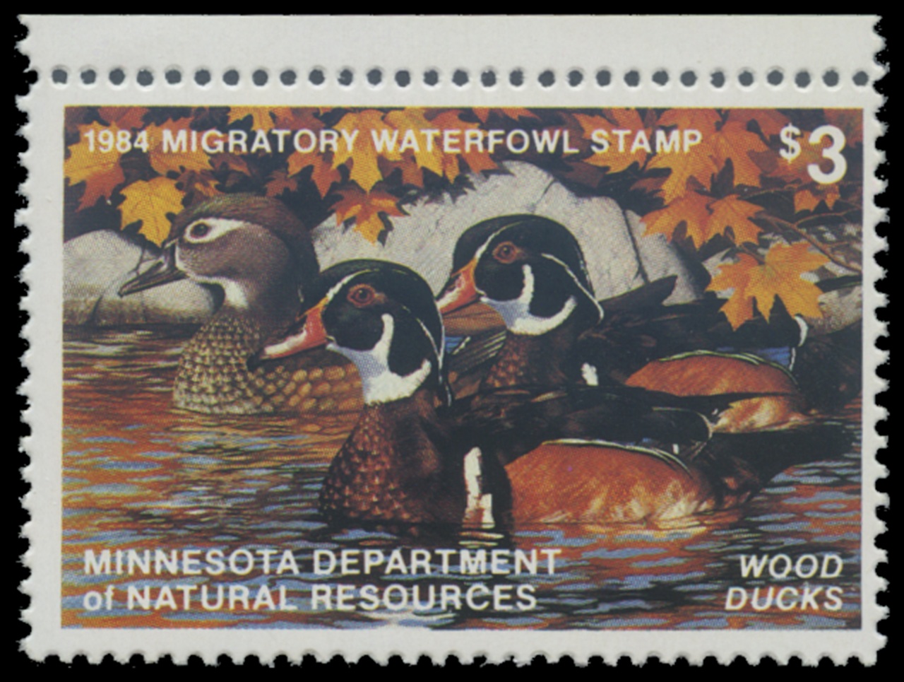 MN8 1984 State Duck Stamp. Mint Never Hinged. Very Fine. Wood Ducks by Thomas Gross.
