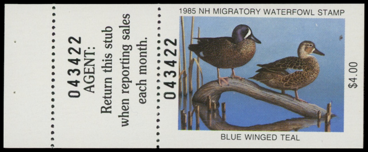 NH3H 1985 State Duck Stamp. Mint Never Hinged. Very Fine Hunter Type. Blue-winged Teak by Tom Hirata.