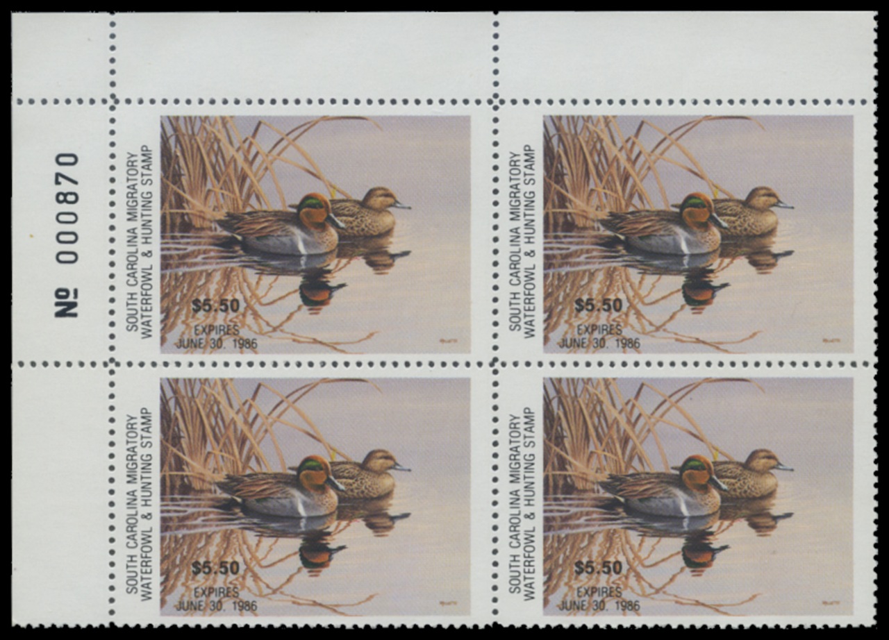 SC5 1985 State Duck Stamps. Mint Never Hinged. Very Fine. Green-winged Teal by Rosemary Millette.