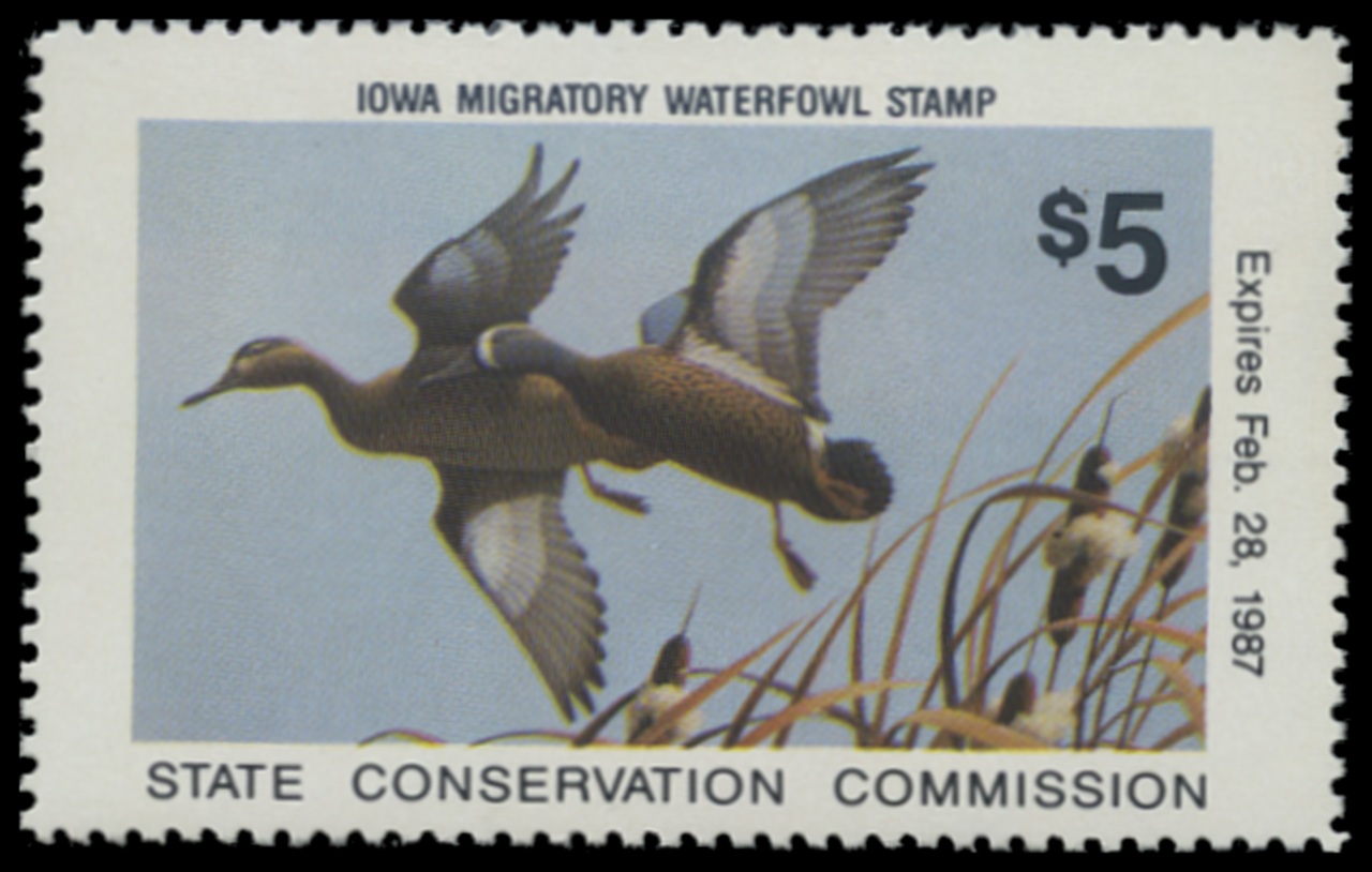 IA15 1986 State Duck Stamp. Mint Never Hinged. Very Fine. Blue-wing Teal by Paul Bridgford.