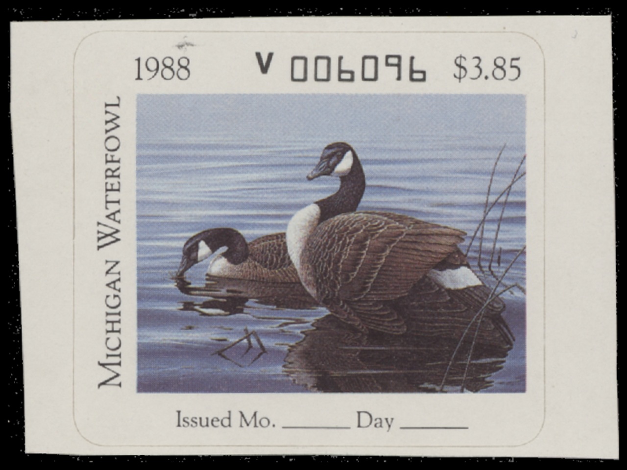 MI13 1988 State Duck Stamp. Mint Never Hinged. Very Fine. Canada Geese by John Martens.
