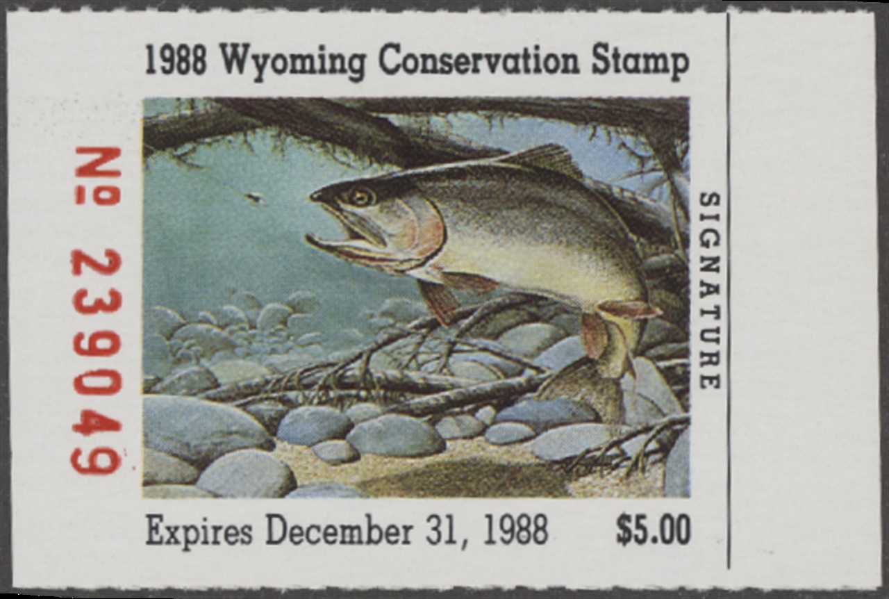 WY5 1988 State Duck Stamp. Mint Never Hinged. Very Fine. Cutthroat Trout by Clark Ostergaard.