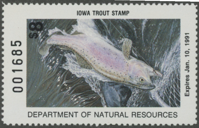 IAT30 1990 Iowa Trout Fishing Stamp. Mint Never Hinged. Very Fine.