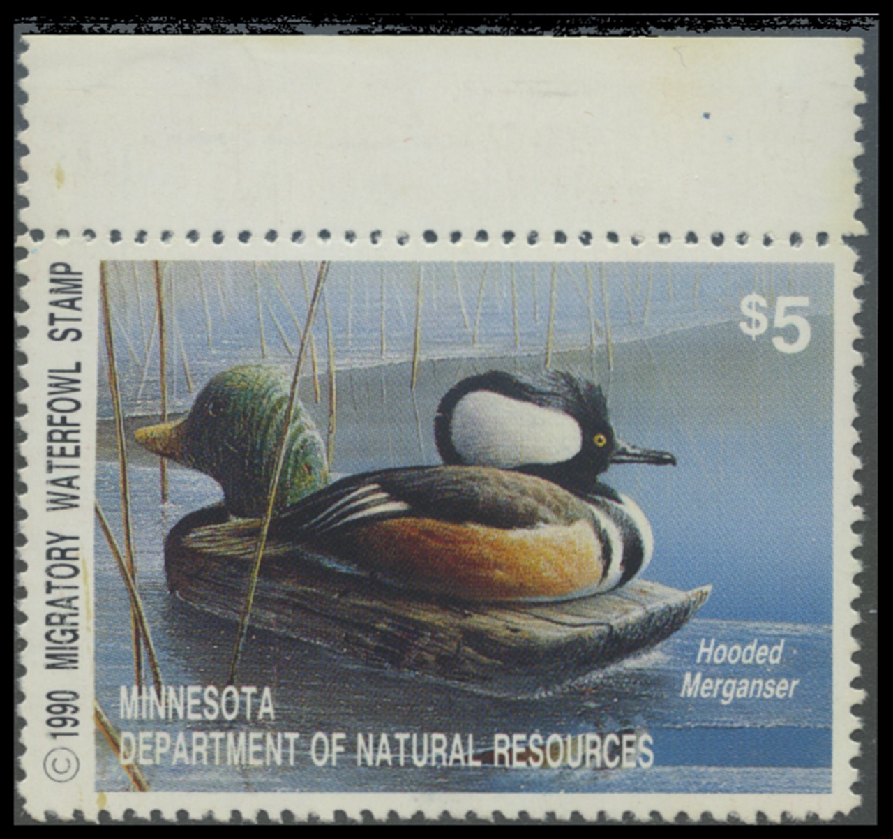 MN14 1990 State Duck Stamp. Mint Never Hinged. Very Fine. Hooded Mergansers by Kevin Daniel.