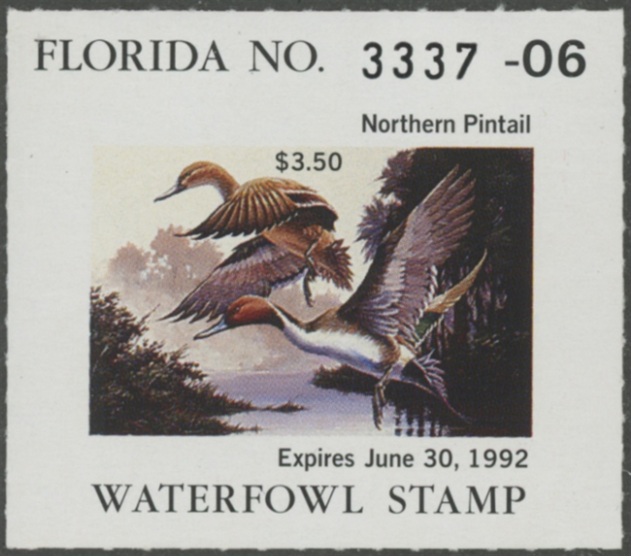 FL13 1991 State Duck Stamp. Mint Never Hinged. Very Fine. Pintails by Richard L. Hansen.