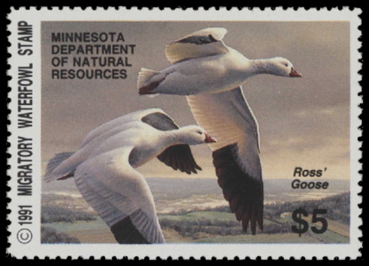 MN15 1991 State Duck Stamp. Mint Never Hinged. Very Fine. Ross' Geese by Daniel Smith.
