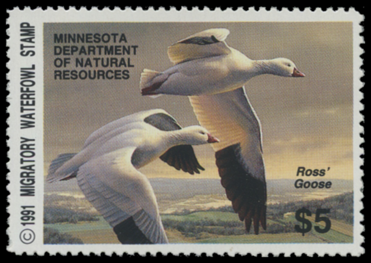 MN15 1991 State Duck Stamp. Mint Never Hinged. Very Fine. Ross' Geese by Daniel Smith.