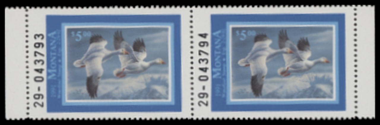 MT6 1991 State Duck Stamp Pair. Mint Never Hinged. Very Fine. Snow Geese by Joe Thornbrugh.