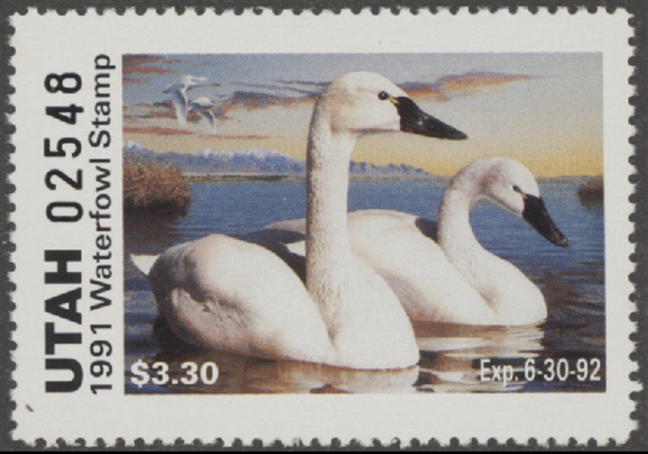 UT6 1991 State Duck Stamp. Mint Never Hinged. Very Fine. Tundra Swan by Robert Steiner.