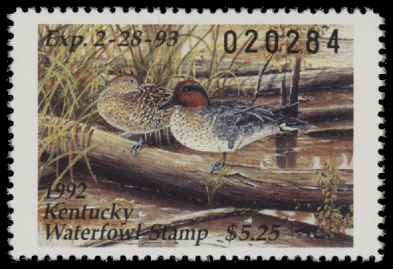 KY8 1992 State Duck Stamp. Mint Never Hinged. Very Fine. Gree-wing Teal by Phillip Powell.