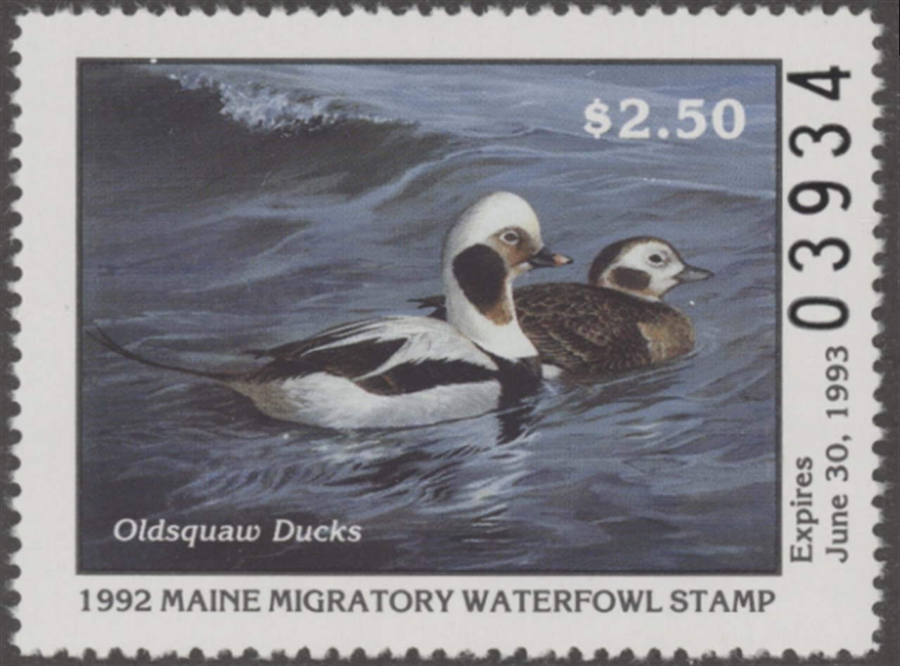 ME9 1992 State Duck Stamp. Mint Never Hinged. Very Fine. Old Squaws by Persis Clayton Weirs.