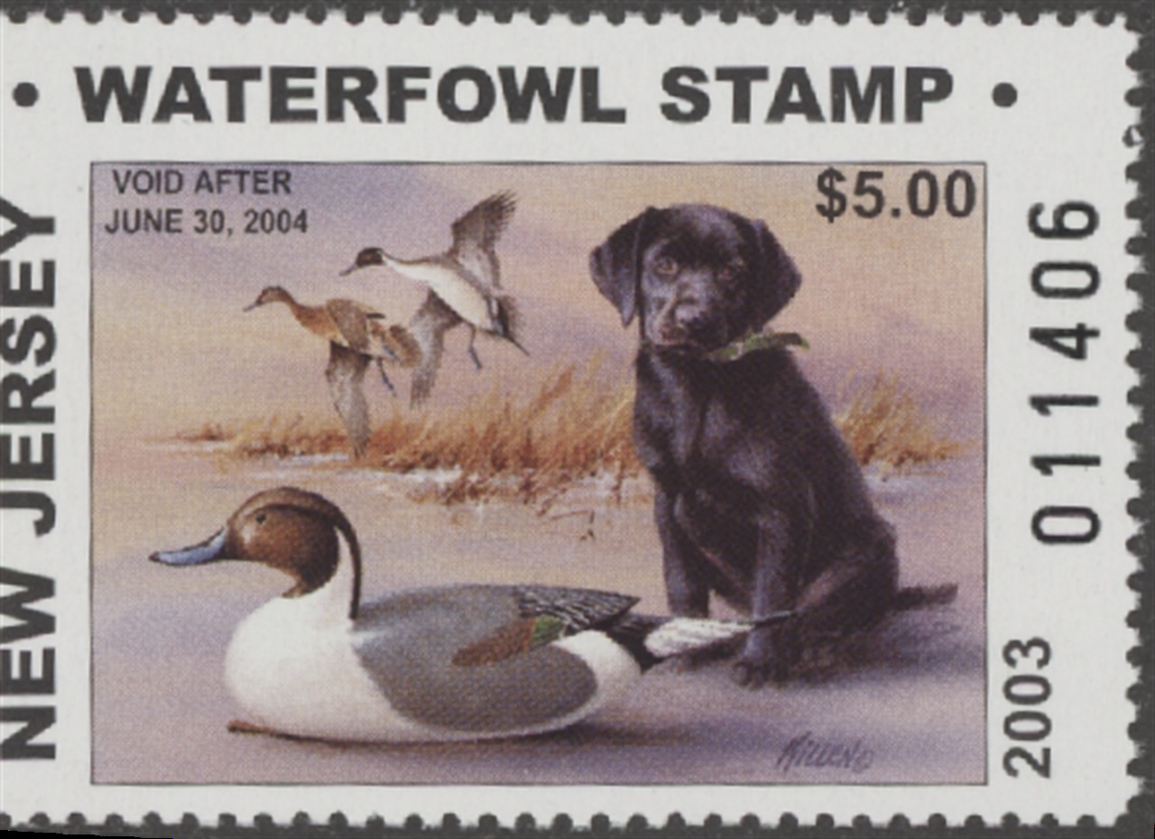 NJ20R 2003 State Duck Stamp. Mint Never Hinged. Very Fine. Labrador & Decoy by Jim Killen.