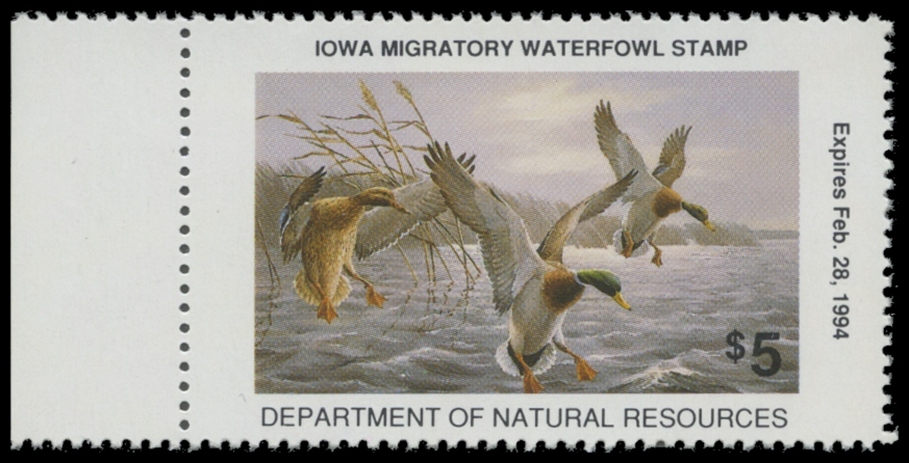 IA22 1993 State Duck Stamp. Mint Never Hinged. Very Fine. Mallards by Maynard Reece.