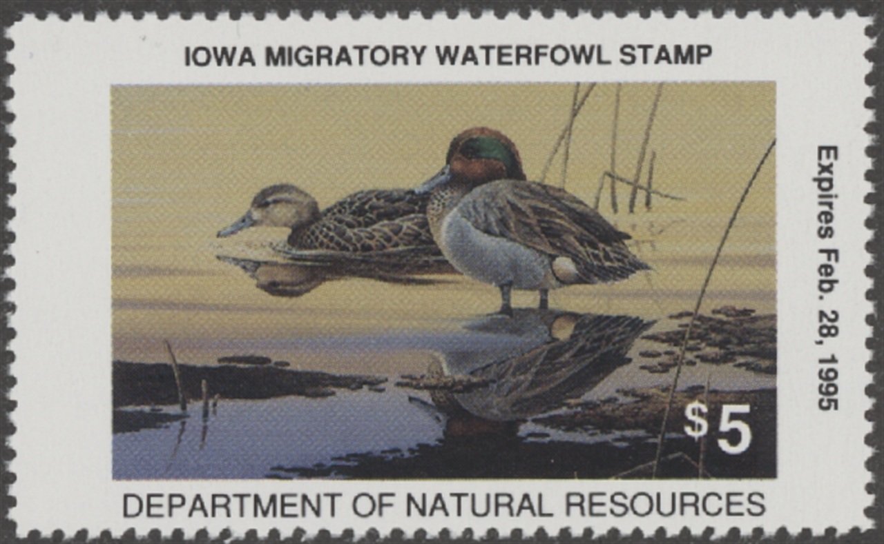 IA23 1994 State Duck Stamp. Mint Never Hinged. Very Fine. Pair of Green-wing Teal by Dietmar Krumrey.
