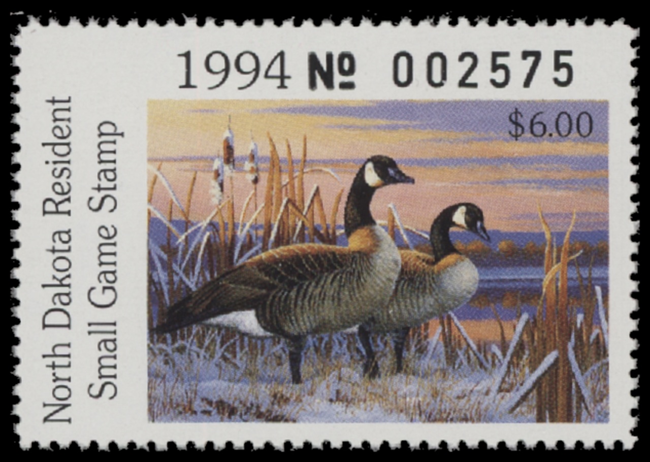 1994 North Dakota Duck Stamp Catalog Number: ND13Condition: MNHCentering: VF> SKU: 17041 Free shipping $7.00 Qty: Add to cart Custom wishlist OK Add to wishlist Email a friend ND13 1994 State Duck Stamp. Mint Never Hinged. Very Fine. Canada Geese by Darrell Davis. Products specifications Attribute name Attribute value Catalog Number ND13 Condition MNH, Mint Never Hinged Centering TLA VF Centering Very Fine Year 1994 Artist Darrell Davis Subject Canada Geese