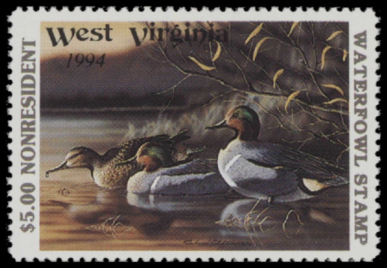 WV8 1994 State Duck Stamp. Non-resident. Mint Never Hinged. Very Fine. Green-winged Teal by Richard Clifton.