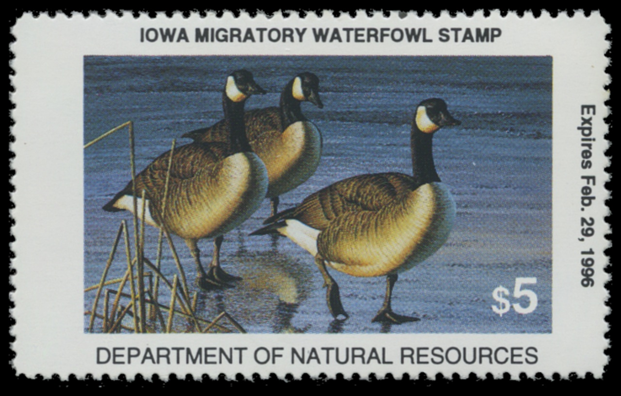 IA24 1995 State Duck Stamp. Mint Never Hinged. Very Fine. Canada Geese by Cynthie Fisher.