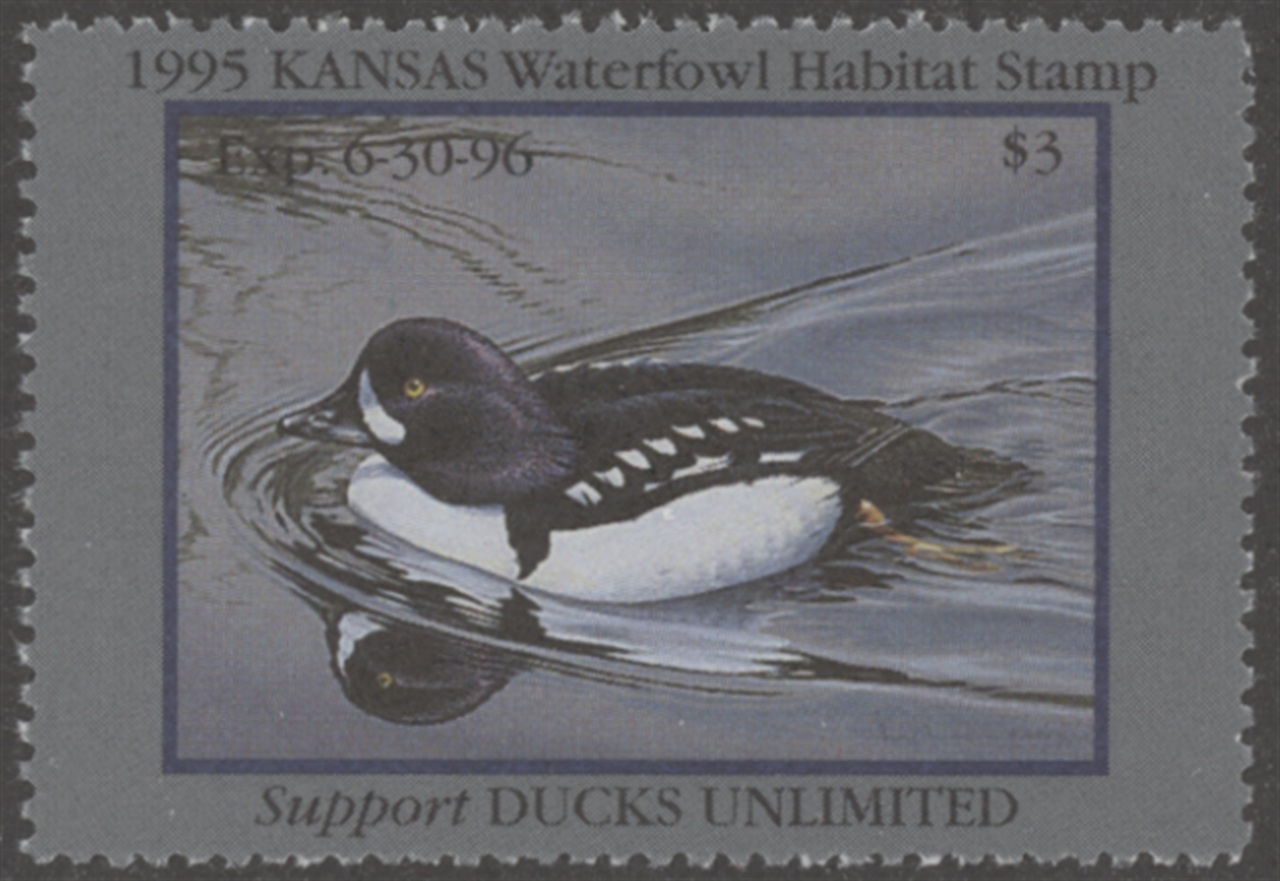 KS9 1995 State Duck Stamp. Mint Never Hinged. Very Fine. Barrow's Goldeneye by Neal R. Anderson.