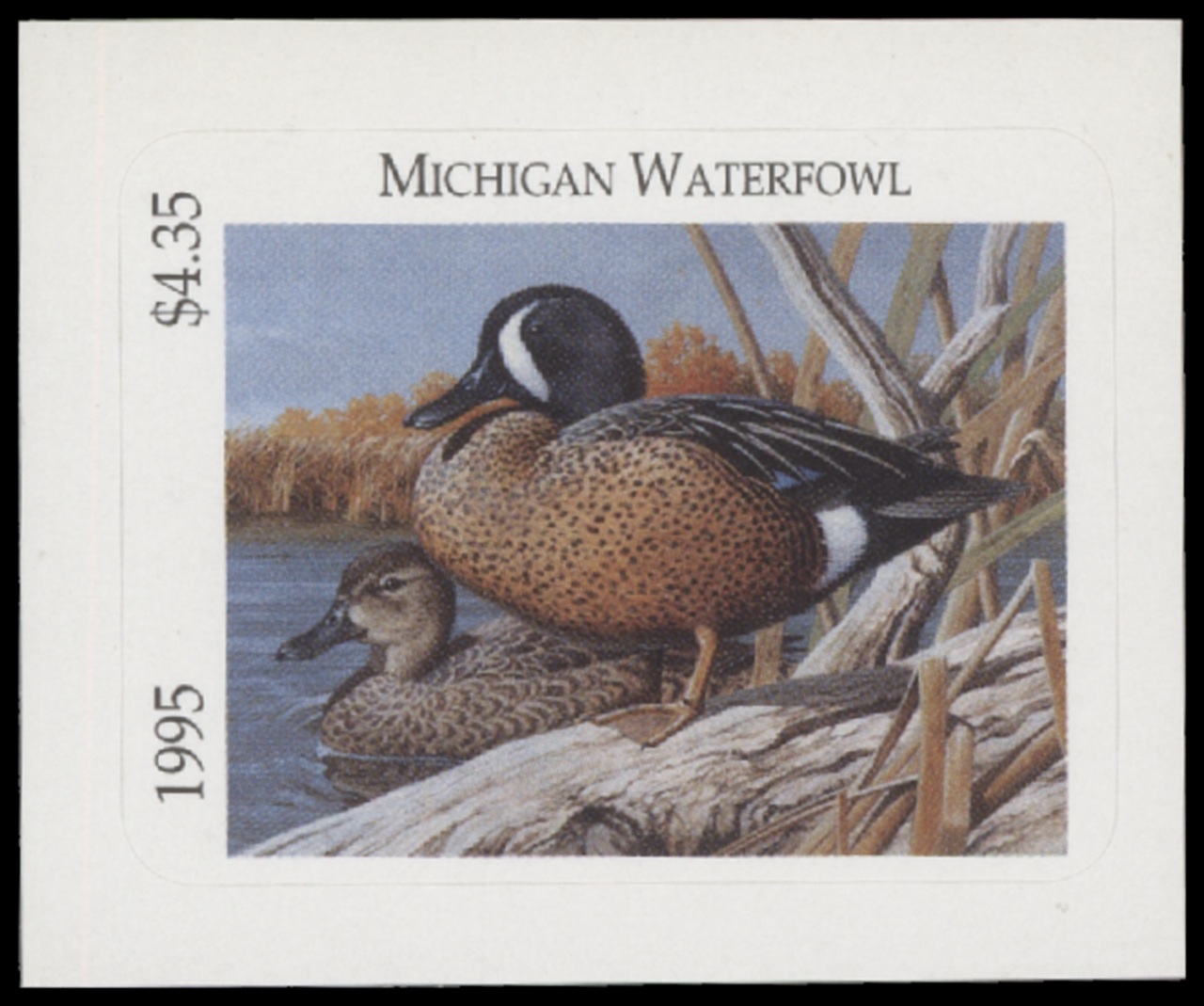 MI20 1995 State Duck Stamp. Mint Never Hinged. Very Fine. Blue-winged Teal by Rod Lawrence.
