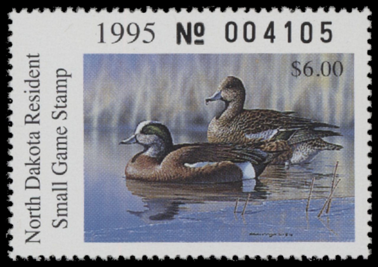 ND14 1995 State Duck Stamp. Mint Never Hinged. Very Fine. Widgeon by Richard Clifton.