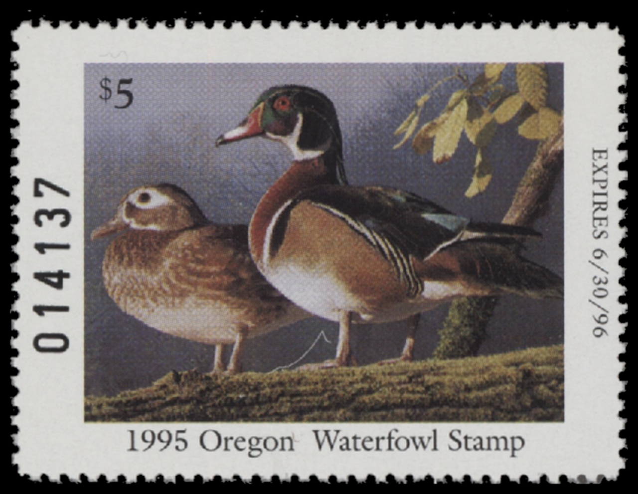 OR12 1995 State Duck Stamp. Mint Never Hinged. Very Fine. Wood Ducks by Robert Steiner.