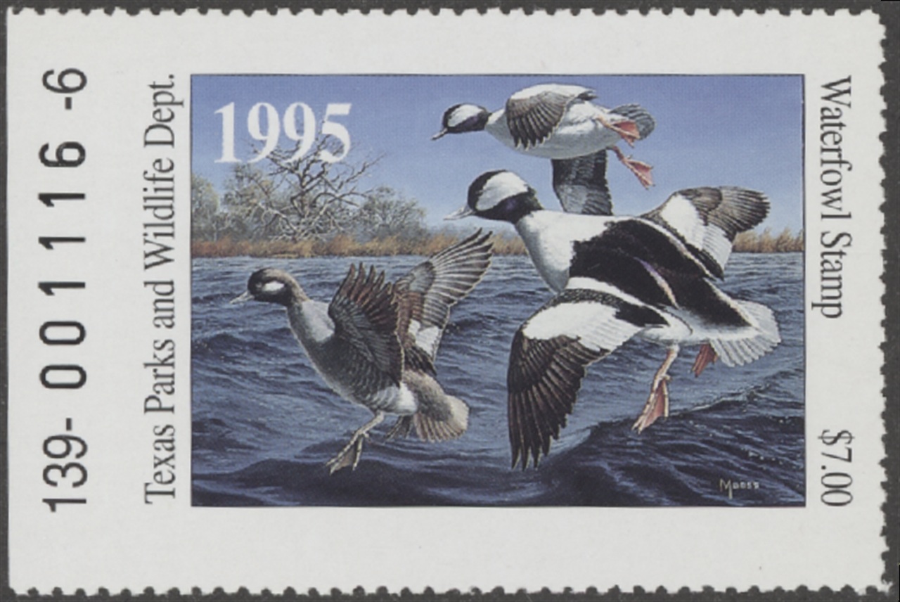 TX15 1995 State Duck Stamp. Mint Never Hinged. Very Fine. Buffleheads by David A. Maass.
