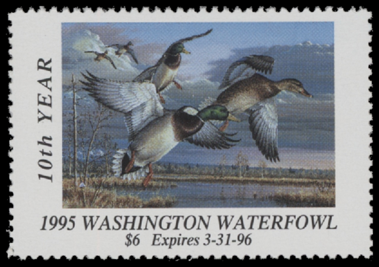 WA10 1995 State Duck Stamp. Mint Never Hinged. Very Fine. Mallards by Cynthie Fisher.