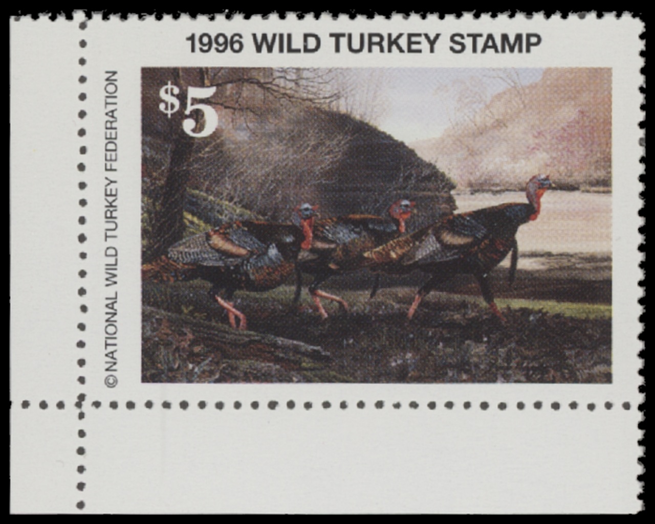 NWTF21 1996 National Wild Turkey Federation Wild Turkey Stamp. Mint Never Hinged. Very Fine.