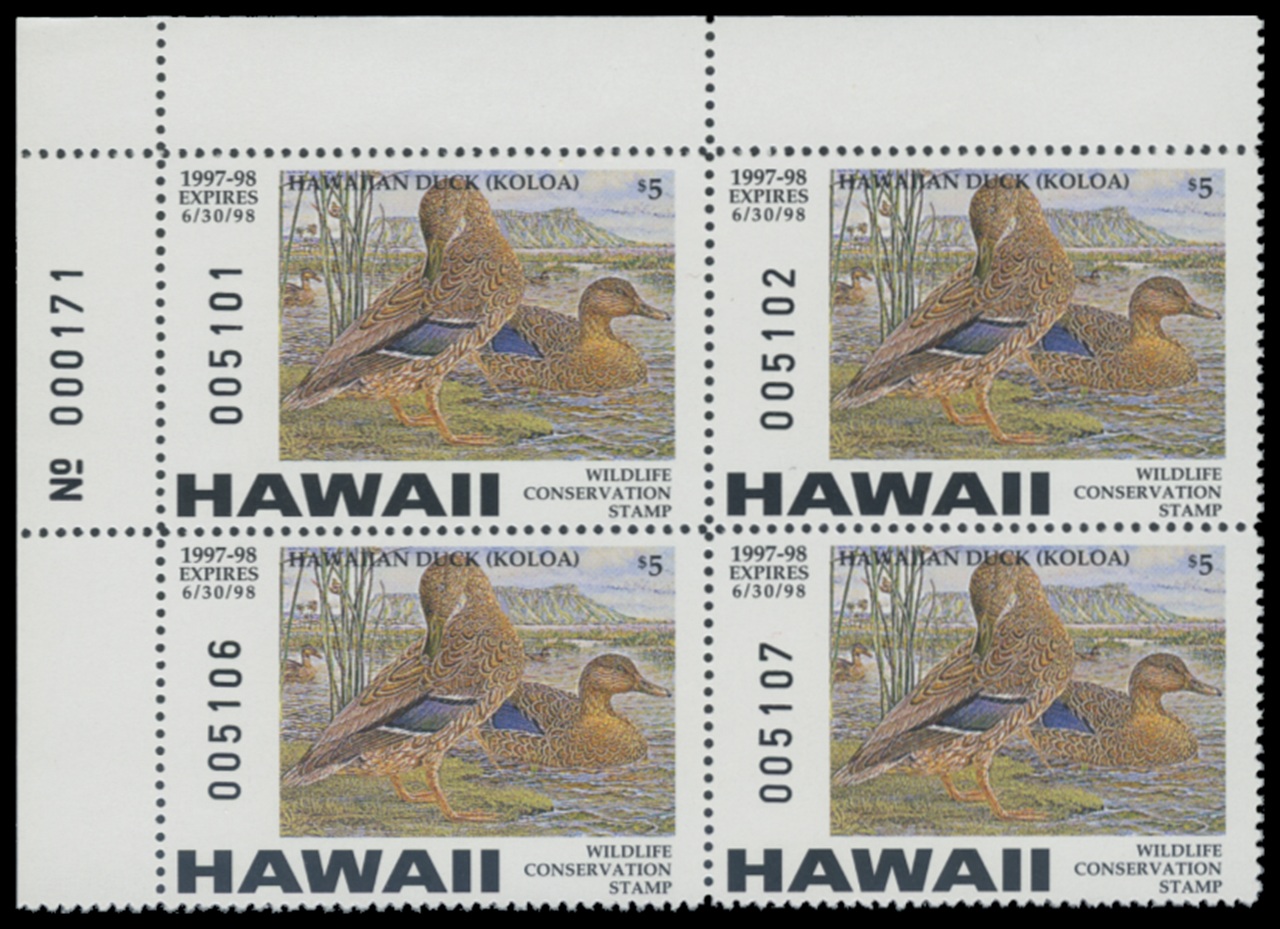 HI2 1997 State Duck Stamps. Mint Never Hinged. Very Fine. Hawaiian Duck by Danial Van Zyle.