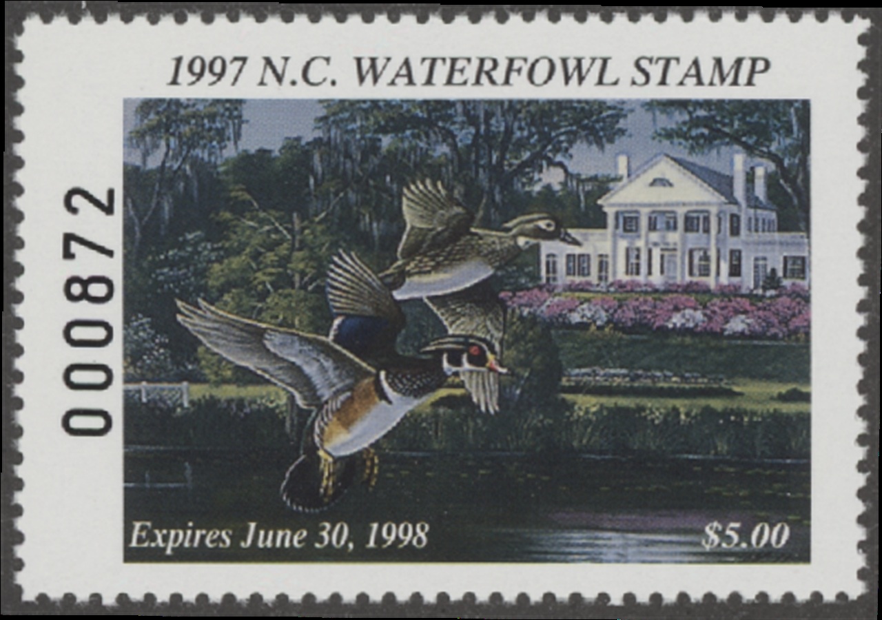 NC15 1997 State Duck Stamp. Mint Never Hinged. Very Fine. Wood Ducks by Wilhelm Goebel.