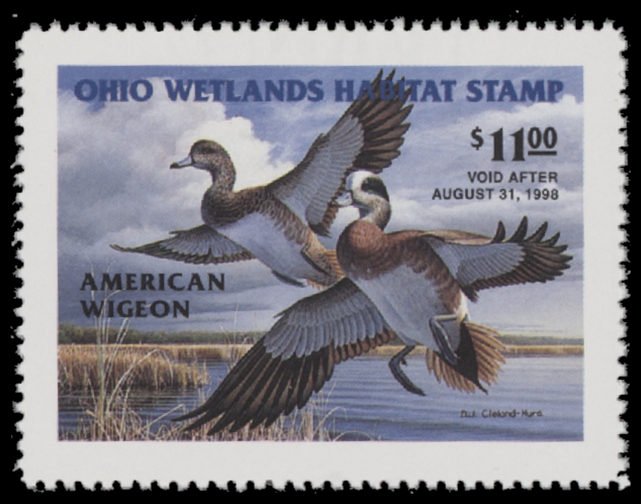 OH16 1997 State Duck Stamp. Mint Never Hinged. Very Fine. American Widgeon by D.J. Cleland-Hura.