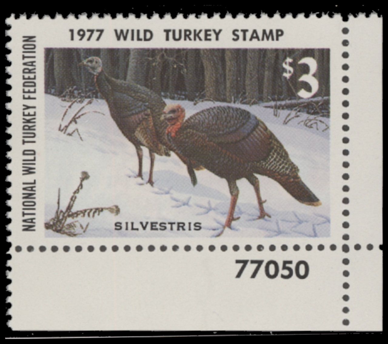 NWTF2 1977 National Wild Turkey Federation Wild Turkey Stamp. Mint Never Hinged. Very Fine.