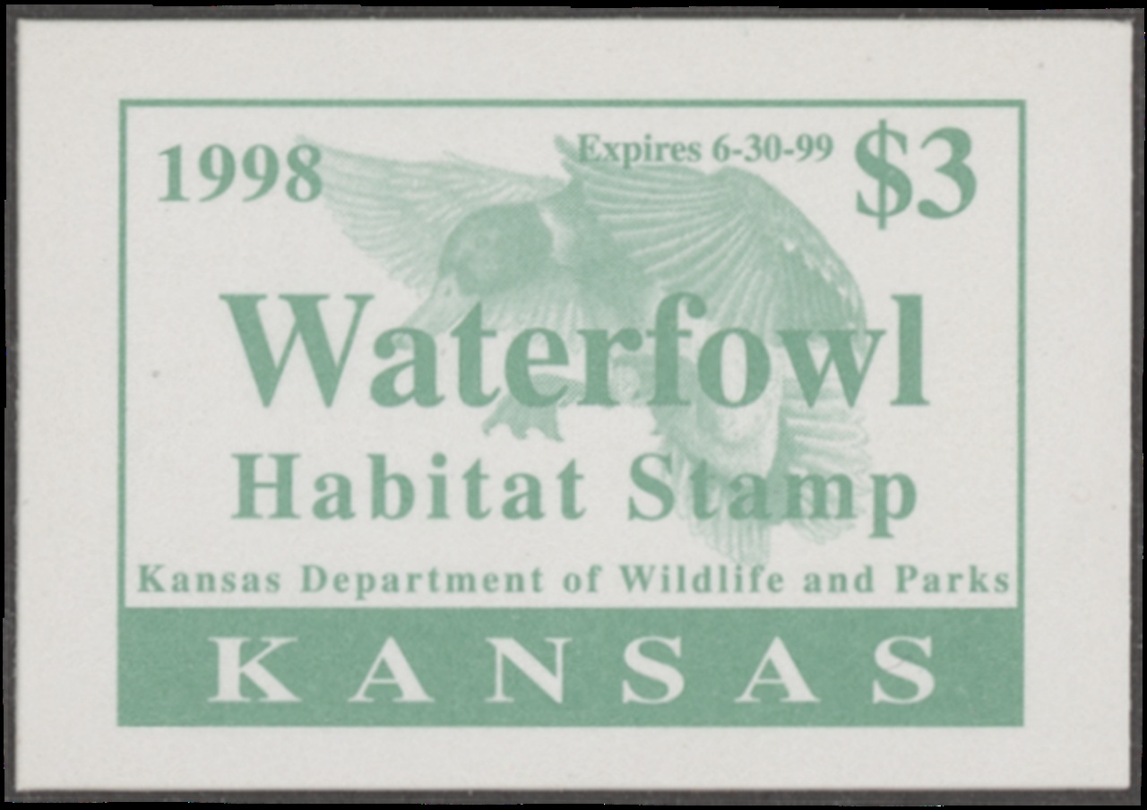 KS12 1998 State Duck Stamp. Mint Never Hinged. Very Fine.
