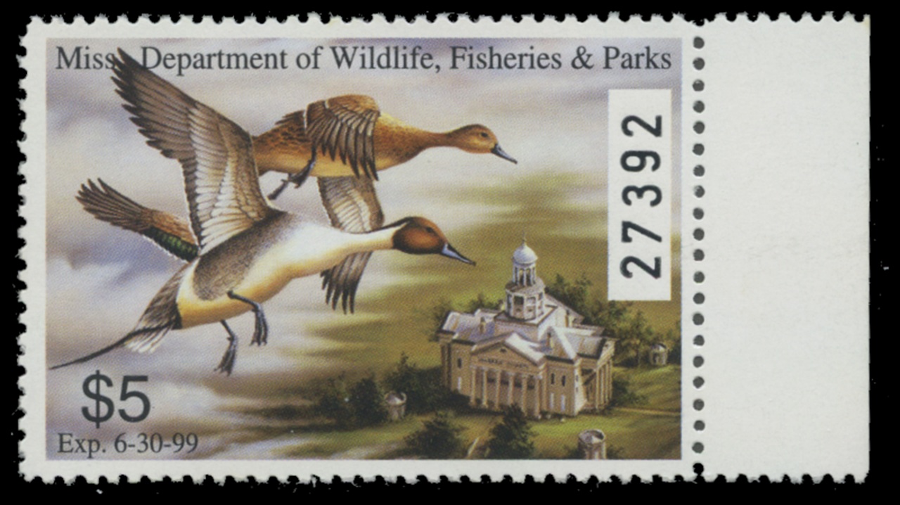 MS23 1998 State Duck Stamp. Mint Never Hinged. Very Fine. Pintails by Joe Latil.