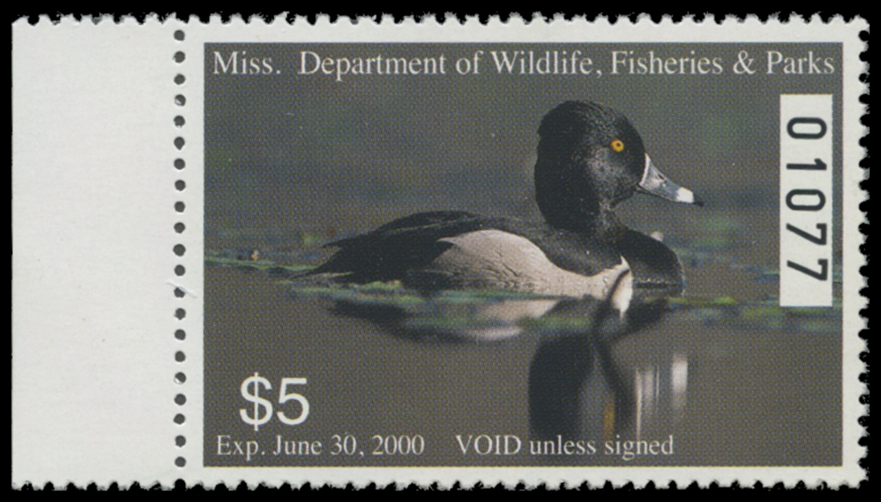 MS24 1999 State Duck Stamp. Mint Never Hinged. Very Fine. Ringed-neck Duck by Joe Mac Hudspeth.