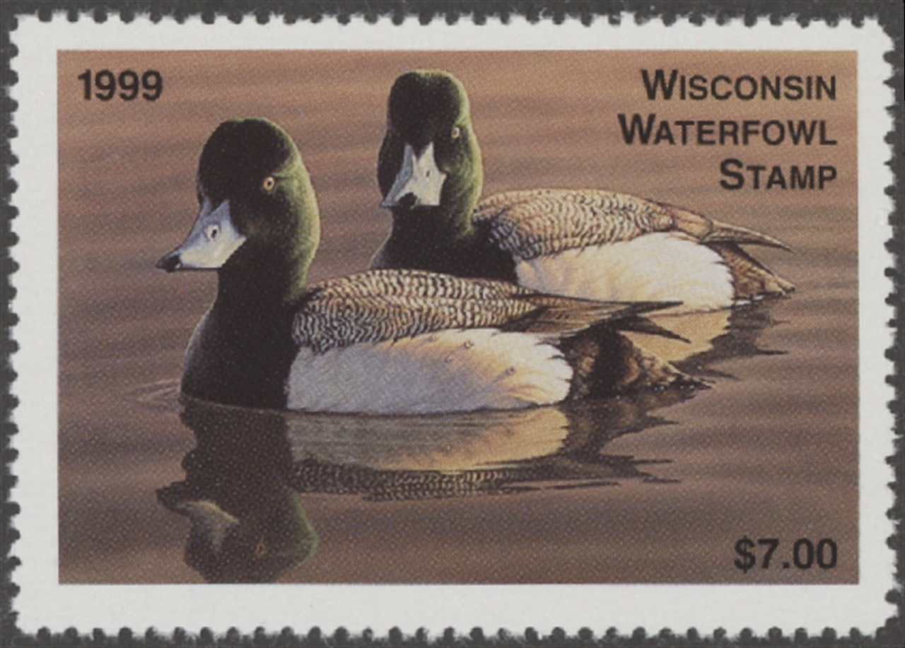 WI22 1999 State Duck Stamp. Mint Never Hinged. Very Fine. Greater Scaup by Frank Mittelstadt.
