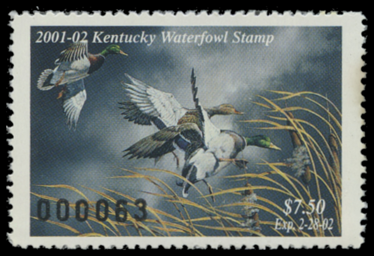 KY17 2001 State Duck Stamp. Mint Never Hinged. Very Fine. Mallards by Harold Roe.