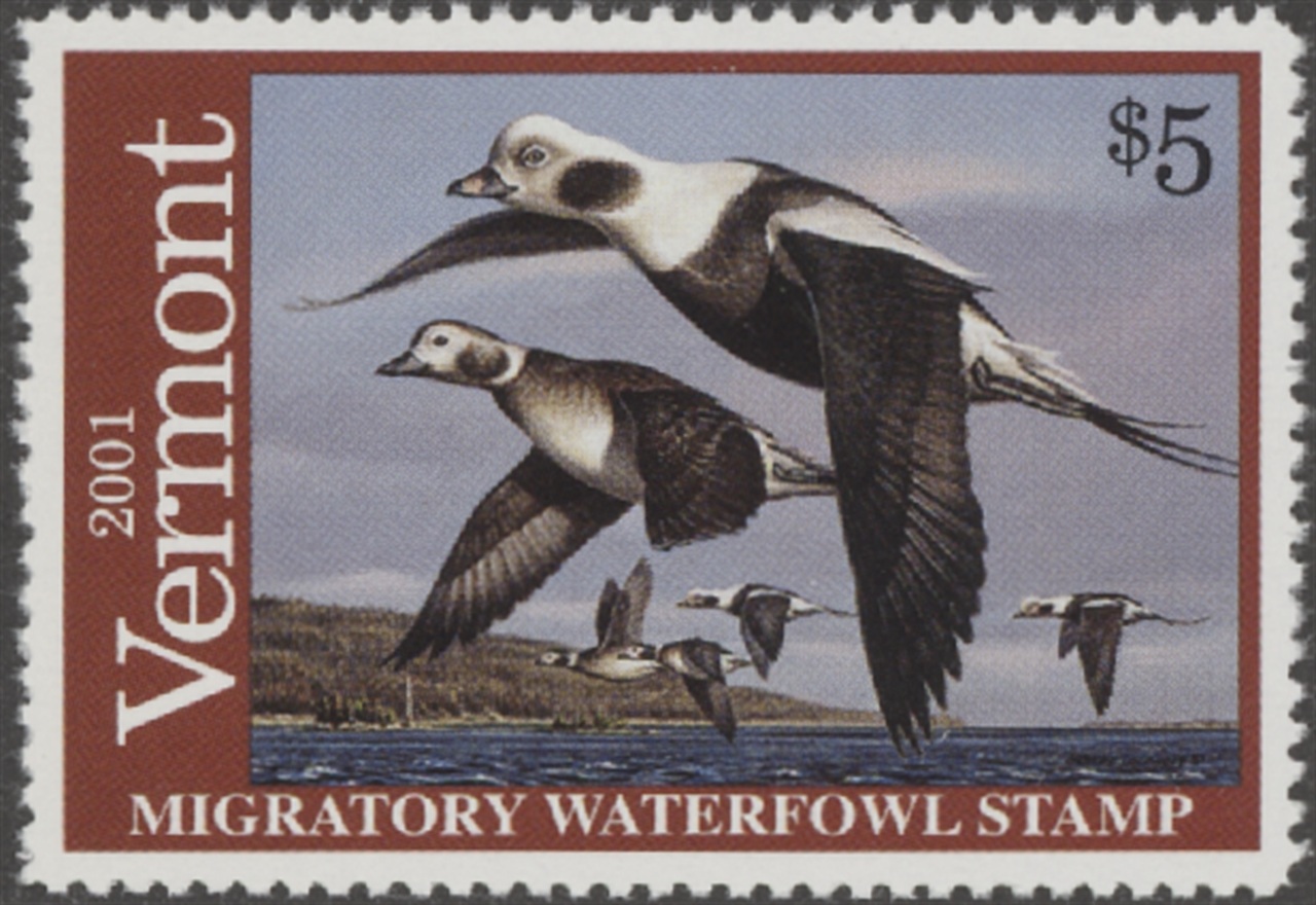 VT16 2001 State Duck Stamp. Mint Never Hinged. Very Fine. Oldsquaw by George Lockwood.