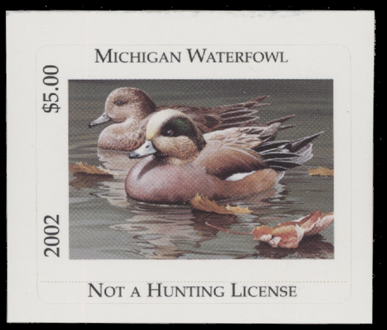 MI27 2002 State Duck Stamp. Mint Never Hinged. Very Fine. American Wigeon by Rod Lawrence.