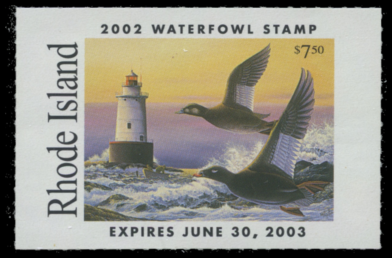 RI14 2002 State Duck Stamp. Mint Never Hinged. Very Fine. Scoters by Keith Mueller.