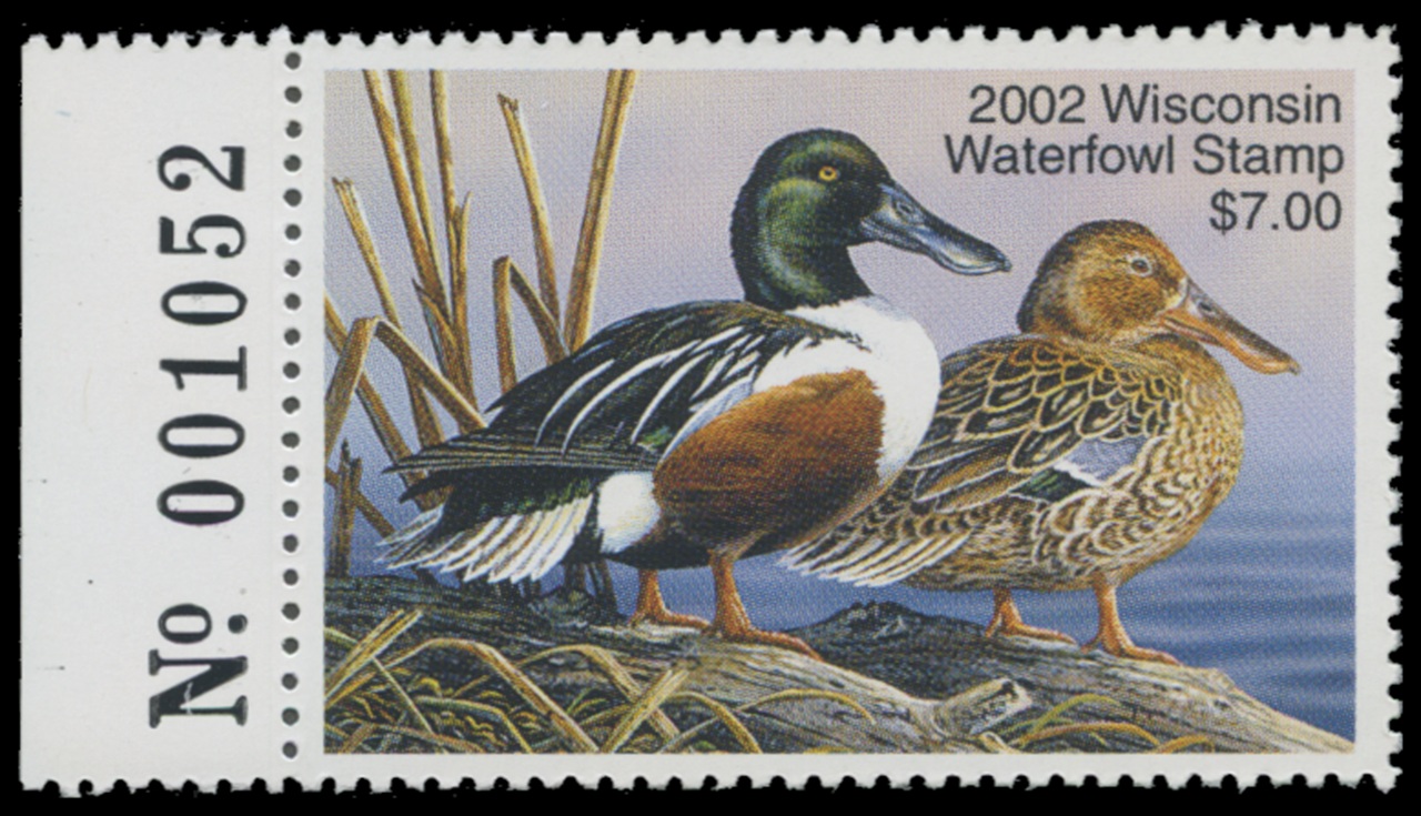 WI25 2002 State Duck Stamp. Mint Never Hinged. Very Fine. Shovelers by Terry Doughty.