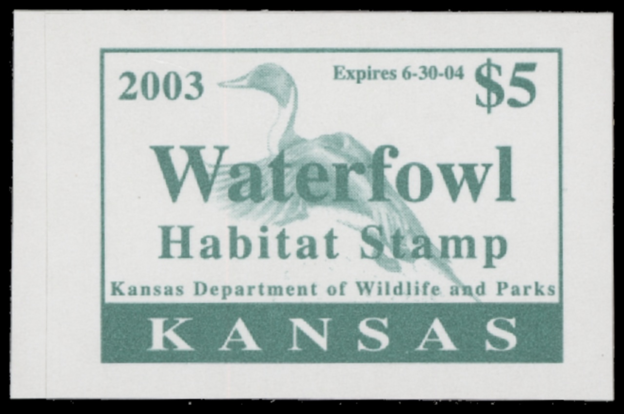 2003 Kansas Duck Stamp MNH VF Catalog Number: KS17Condition: MNHCentering: VF> SKU: 15778 Free shipping $7.00 Qty: Add to cart Custom wishlist OK Add to wishlist Email a friend KS17 2003 State Duck Stamp. Mint Never Hinged. Very Fine. Products specifications Attribute name Attribute value Catalog Number KS17 Condition Mint Never Hinged Centering TLA VF Centering Very Fine Year 2003