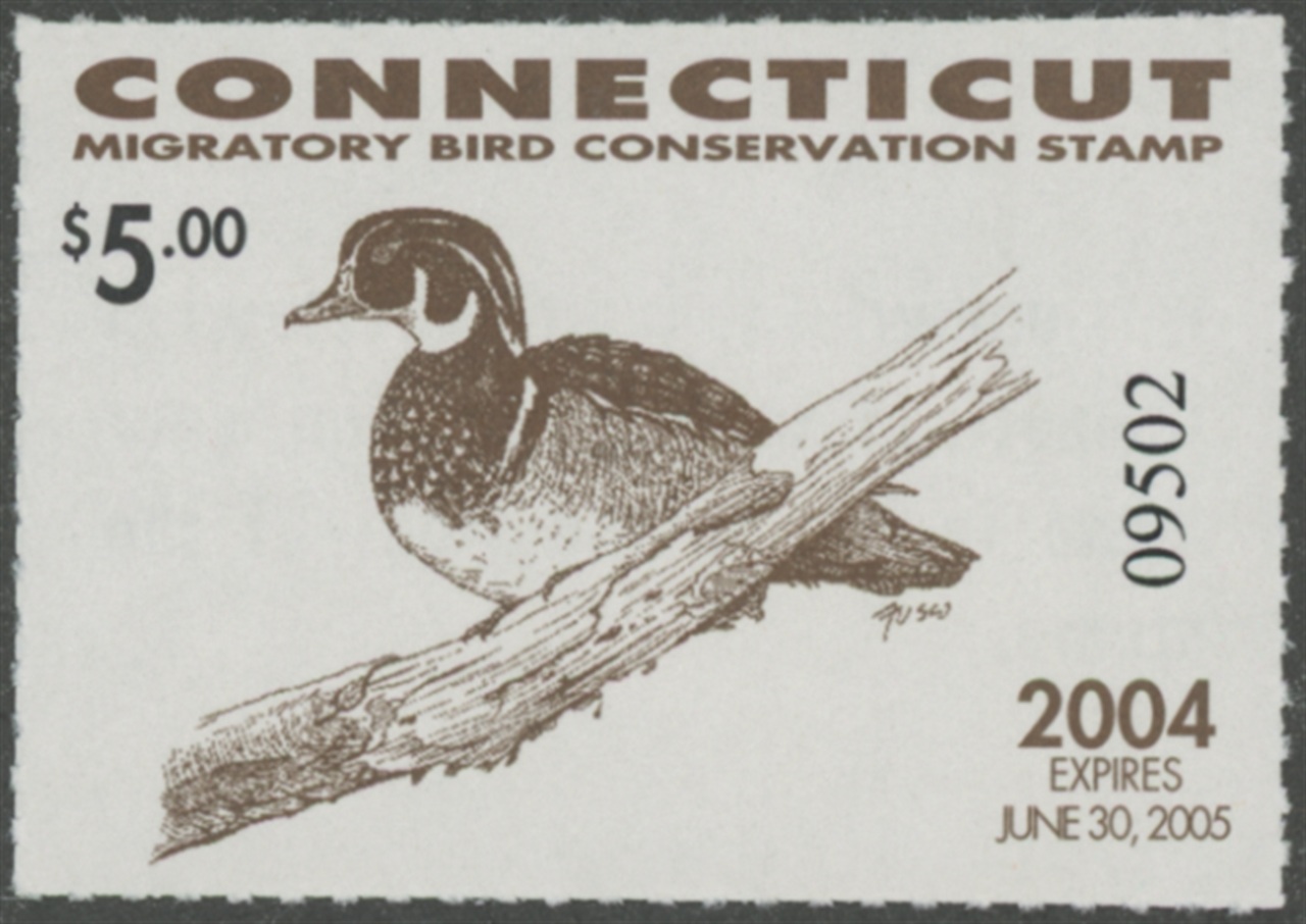 CT12 2004 State Duck Stamp. Mint Never Hinged. Very Fine. Drake Wood Duck by Paul Fusco.