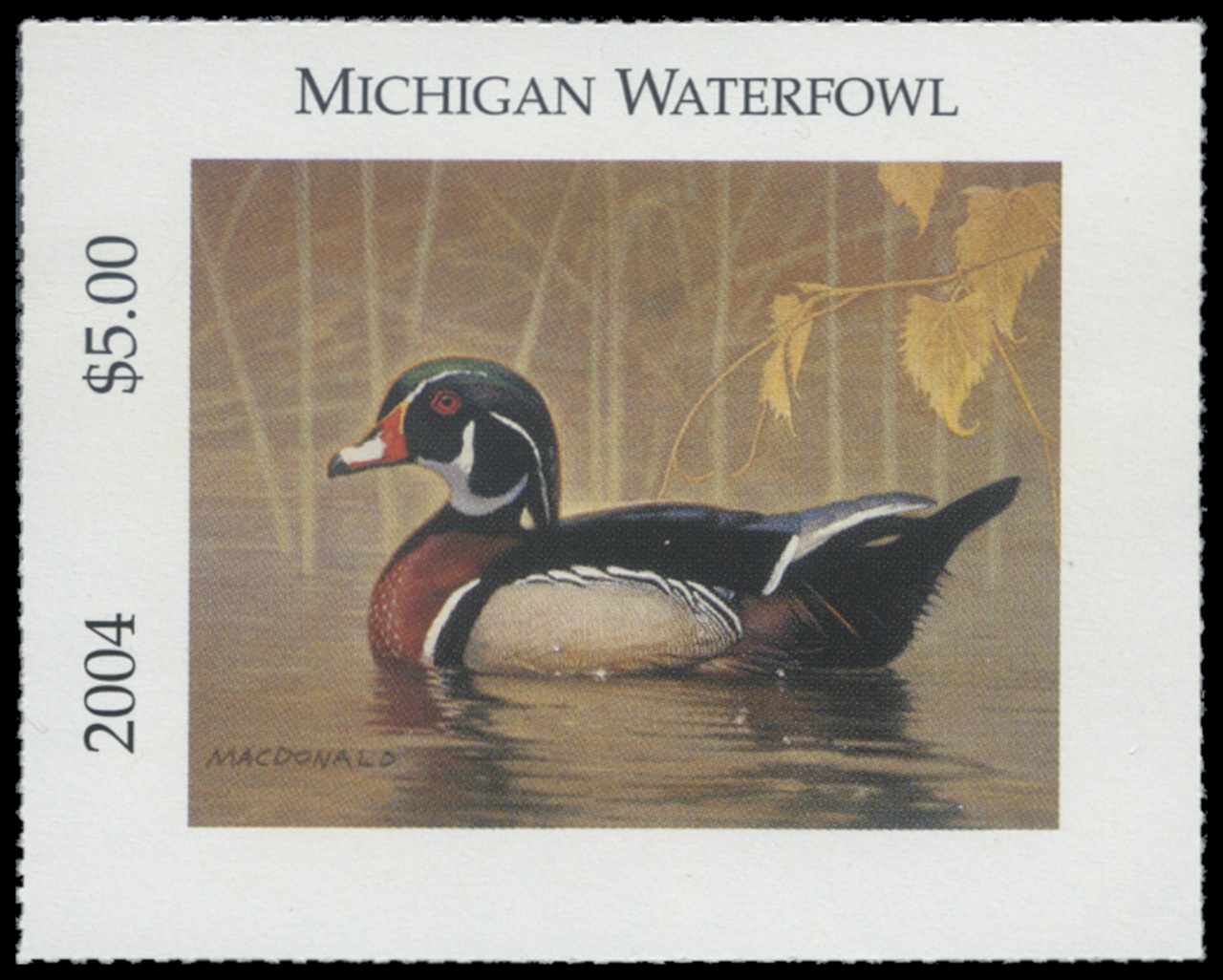 MI29 2004 State Duck Stamp. Mint Never Hinged. Very Fine. Wood Duck by Tim Macdonald.