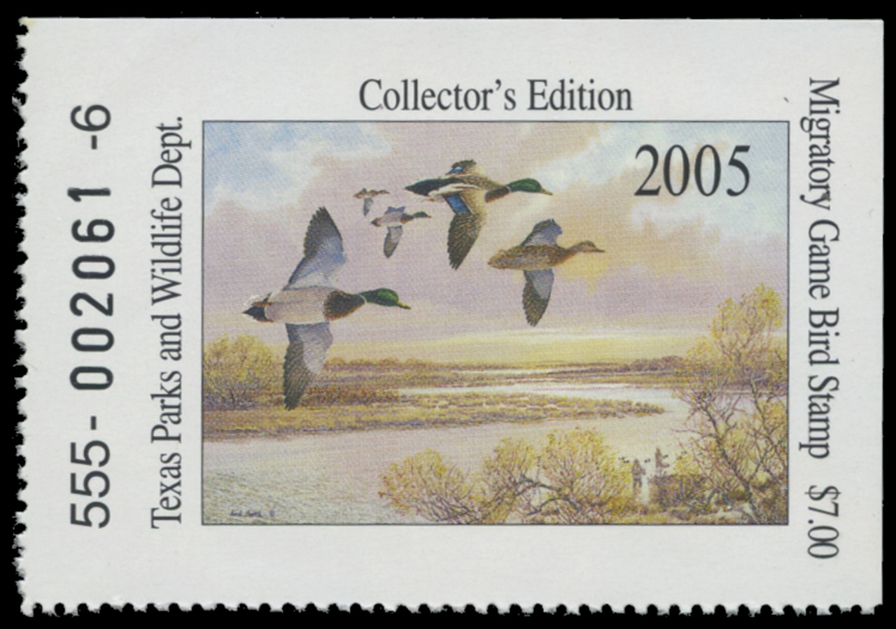 TX25 2005 State Duck Stamp. Mint Never Hinged. Very Fine. Mallards by Herb Booth.