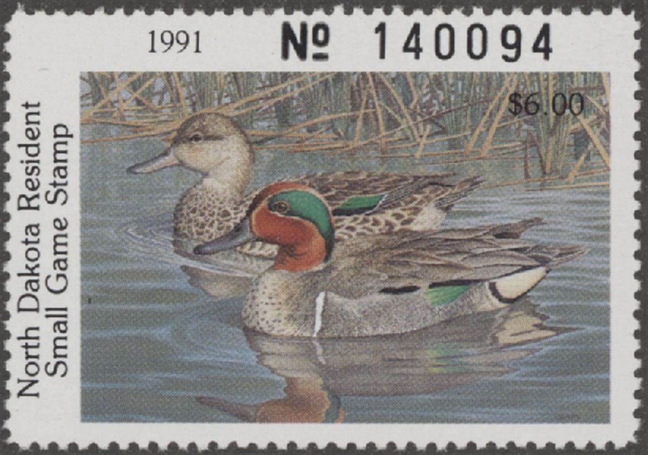 ND25 2006 State Duck Stamp. Mint Never Hinged. Very Fine. Green-winged Teal by Tom Hirata.