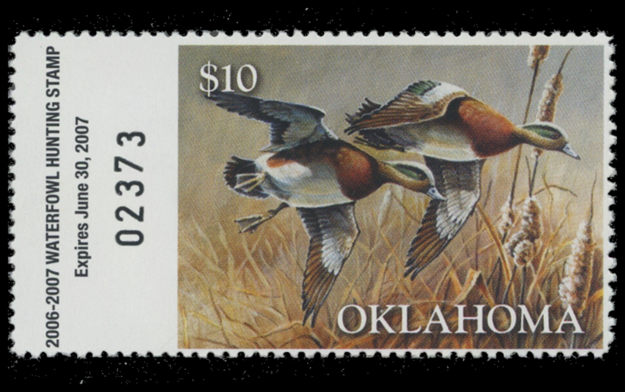 OK27 2006 State Duck Stamp. Mint Never Hinged. Very Fine. Wigeon by James Hublick.