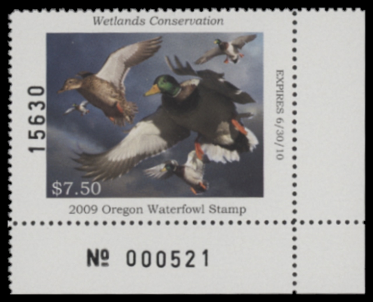 OR26 2009 State Duck Stamp. Mint Never Hinged. Very Fine. Mallards by Robert Steiner.